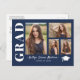 Annoncez fièrement votre diplôme d'études secondaires ou collégiales avec ces 4 cartes postales personnalisées de collage photo en bleu marine et blanc. Il vous suffit de déposer vos photos personnelles et si nécessaire, utilisez l'outil de conception pour les rogner pour un ajustement parfait. Vous pouvez même customiser la couleur arrière - plan à l'un de vos choix. Ces cartes élégantes peuvent facilement devenir vos invitations personnelles de grand public en changeant simplement le texte au besoin. Pour voir d'autres articles comme celui-ci, visitez mon magasin ici à "www.Zazzle.com/LakeViewCardCo". Merci