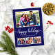 4 Photos Collage Joyeux Vacances Moderne Bleu Carte Postale