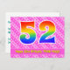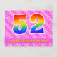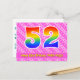 L'avant de cette carte de vœux d'anniversaire au design joyeux, amusant et heureux comporte un grand nombre "52" avec un motif dégradé de spectre d'arc-en-ciel, ainsi que le message "Joyeux 52e anniversaire" et un nom de destinataire modifiable. L'avant comporte également un motif rayé rose foncé et rose clair joyeux avec des formes de cœur. Le verso comporte un message de vœux d'anniversaire personnalisé, ou pourrait éventuellement être effacé et laissé vide si un message doit être écrit à la main à la place. Une carte de vœux d'anniversaire personnalisable comme celle-ci pourrait être un moyen amusant de célébrer le cinquante-deuxième anniversaire de quelqu'un. Des cartes postales comme celle-ci pourraient également être utilisées pour inviter des invités à une fête d'anniversaire ou à une célébration organis