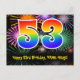 La façade de cette carte postale amusante, colorée et passionnante d'anniversaire comporte un grand nombre de "53" avec un motif inspiré par un gradient de spectre arc-en-ciel, ainsi que le message "Happy 53rd Birthday", et un nom de destinataire personnalisé. L'avant est également orné d'un motif arrière - plan dynamique et coloré inspiré par l'aspect d'un feu d'artifice festif éclatant. Le verso contient un message d'anniversaire modifiable, ou peut-être qu'il est effacé et laissé vide si un message doit être écrit à la main. Une carte postale d'anniversaire comme celle-ci pourrait être une façon amusante d'envoyer des voeux d'anniversaire à quelqu'un qui célèbre son cinquante-troisième anniversaire. Des cartes postales comme celle-ci peuvent aussi être utilisées pour les invités invitations à une fête d'anniversaire organisée pour quelqu'un qui a 53 ans. [~Z0000446]