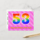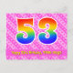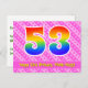 L'avant de cette carte postale de joyeux anniversaire au ton enjoué, heureux et amusant présente un grand nombre "53" avec un motif inspiré d'un dégradé de spectre d'arc-en-ciel, ainsi que le message "Joyeux 53e anniversaire" et un nom de destinataire personnalisé. L'avant présente également un motif joyeux de cœurs et de rayures rose clair et rose foncé. Le verso comporte un message de vœux d'anniversaire personnalisé, ou pourrait éventuellement être effacé et laissé vide si un message doit être écrit à la main à la place. Une carte postale d'anniversaire personnalisable comme celle-ci pourrait être un moyen amusant d'envoyer un message pour célébrer le cinquante-troisième anniversaire de quelqu'un. Des cartes postales comme celle-ci pourraient également être utilisées pour inviter des invités à une fête d'anniversaire