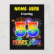 La façade de cette carte postale d'invitation à la fête d'anniversaire animée et passionnante comporte un nom modifiable, un motif inspiré par des feux d'artifice festifs vibrants, et le message "55 ANS !" avec un motif coloré inspiré du spectre arc-en-ciel. Le verso comporte un message personnalisé qui pourrait décrire le moment et l'endroit où la partie est tenue, en plus d'autres informations pertinentes. Des cartes postales d’invitation comme celle-ci pourraient être envoyées aux invités potentiels d’une fête d’anniversaire organisée pour célébrer le cinquante-cinquième anniversaire de quelqu’un. [~Z0000452]