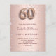 Une invitation moderne, élégante et glamour pour un 60ème anniversaire. Un faux rose or à l'aspect métallique arrière - plan avec diamants roses. Le nom est écrit avec un rose moderne de couleur or foncé à la main écriture style. Personnalisez et ajoutez les détails de votre fête. Le numéro 60 est écrit avec une police de style ballon, script. Retour : arrière - plan or rose, design carte postale. Conseil : Si vous ne voulez pas qu'il ressemble à une carte postale, cliquez sur customiser, allez à l'arrière et retirez le séparateur et le timbre postal.