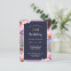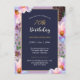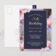 Carton d'invitation Fête Fleurale pour votre fête d'anniversaire de 70 ans combinant un fond bleu crépusculaire sombre pour un texte facilement lisible avec des fleurs de devant lumineuses pleines de lumière printanière.