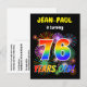 La façade de cette carte postale d'invitation à la fête d'anniversaire amusante et passionnante comprend un nom personnalisable, un motif inspiré par les feux d'artifice vibrants, et le message "76 ANS !" avec un motif coloré inspiré du spectre arc-en-ciel. Le verso comporte un message modifiable qui pourrait décrire le moment et l'endroit où la partie est tenue, en plus d'autres informations pertinentes. Des cartes postales d'invitation comme celle-ci pourraient être envoyées aux participants potentiels d'une fête organisée pour célébrer l'anniversaire de quelqu'un qui a 76 ans. [~Z0000452]