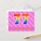 Carte Postale 77e Anniversaire : Rayures roses & Cœurs, Arc-en-c
