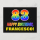 La façade de cette carte postale colorée, amusante et joyeuse à thème d'anniversaire comporte un grand nombre de "83" et le message "HAPPY BANTHDAY", tous deux colorés avec un motif inspiré du gradient de spectre arc-en-ciel, ainsi qu'un nom de destinataire personnalisé jaune gras. L'avant présente également un arrière - plan noir minimal. Le dos de la carte postale a un message de voeux d'anniversaire personnalisable, ou peut être effacé et laissé vide si un message doit être écrit à la main à la place. Une carte postale d’anniversaire personnalisée comme celle-ci pourrait être une façon amusante de célébrer le quatre-vingt-troisième anniversaire de quelqu’un. [~Z0000474]