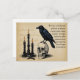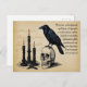 This postcard resembles a page from an old book of magic spells, with text in an arcane language, and illustrations of black candles, a skull, and a raven. Nice, Gothic imagery, perfect for those who enjoy dark fantasy and magic.