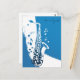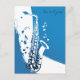 Cette carte postale dominante bleu-blanc présente une illustration de saxophone accompagnée de notes musicales et de coeurs avec le texte par défaut personnalisable "accordez-vous au jazz !". Un design qui conviendra aux amateurs de jazz !