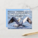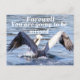 Un pélican s'envole avec ses ailes écartées. Super carte postale pour adieu, au revoir, si long, vous manquez et plus encore.