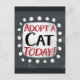 "Adoptez un chat aujourd'hui" est un design de texte mignon en gris avec du texte noir et rouge. Il est placé sur une forme d'accent blanc et entouré de points blancs mignons.