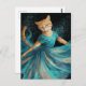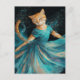 Carte Postale Adorable Gingembre de danse chat en robe bleue