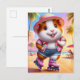 Carte Postale Adorable Rollerskates de cochon de Guinée à la pla