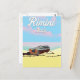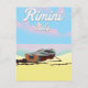 Affiche de plage de Rimini Italie d'un beau vieux bateau à rames sur la célèbre plage de sable.