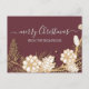 Carte de voeux unique, mignonne et décorative de la saison des Fêtes. Avec de jolis cônes de pin blanc et faux or coloré et des aiguilles arrangement floral design motif sur un arrière - plan rose mauve foncé classique. Avec de la place pour facilement customiser ou personnaliser avec votre nom de famille et le texte de votre choix.