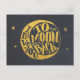 Carte postale avec un design de typographie adorable et romantique avec un croissant de lune et des étoiles d'or sur un arrière - plan à la texture de tableau noir. Le texte dit vous aimer à la lune et de retour, mignon whimsical et fun.
