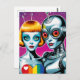 AI généré l'art d'une belle femme alien et le robot argenté qui aime son art scifi lgbtq