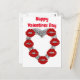 Carte postale joyeux cœur de diamant avec baisers de lèvres rouges