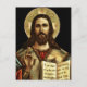 Image vintage richement colorée de Jésus offrant la bénédiction et tenant une Bible ouverte.