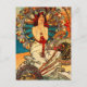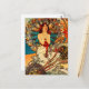 Carte postale Alphone Mucha Monaco Monte Carlo. Affiche de lithographie de 1897. L'artiste tchèque Alphonse Mucha est l'un des plus grands artistes de l'époque Art Nouveau. Monaco Monte Carlo reste l'une de ses affiches les plus populaires. L'oeuvre présente une jeune brune en robe blanche avec une ceinture rouge. Elle est entourée d'une couronne de fleurs rouges et bleues, de feuilles et de petits oiseaux. La fille porte des fleurs rouges dans ses cheveux et tient les mains jusqu'à la bouche. Un grand cadeau pour les amateurs d'Alphonse Mucha, d'Art nouveau, de posters vintage et de publicités.