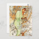 Carte postale Alphonse Mucha Winter note. Peinture à l'huile sur toile de 1896. Le peintre tchèque Alphonse Mucha dépeint plusieurs fois des représentations allégoriques des quatre saisons tout au long de sa carrière. Cette version de Winter est une série terminée en 1896 et présente une jolie jeune femme drapée dans une robe bleu arctique avec un capuchon couvrant ses cheveux brun clair. Elle se dresse sous un arbre enneigé abritant un petit oiseau dans ses mains. Trois autres petits oiseaux sont assis dans les branches alors qu'une tempête hivernale se lève. Un beau cadeau pour les amateurs de Mucha, d'art nouveau et d'art vintage.