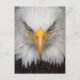 Cette carte postale présente une photo de gros plan du visage d'un aigle chauve américain.