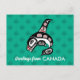 Envoyez cette carte postale à votre famille avec une belle baleine meurtrière haïda de Colombie-Britannique, Canada. L'arrière - plan est vert. Vous ne pouvez pas vous tromper avec l'art Haida de la côte Nord-Ouest, il est populaire depuis des décennies. Ces modèles des Premières nations sont idéaux pour les vêtements et ont toujours l'air bon. Form-line est un art autochtone réalisé par les Premières nations de la côte nord-ouest de l'Amérique du Nord. Bill Holm a inventé le terme "forme-line". Nous utilisons le mot depuis 1965, mais l'art a plusieurs centaines d'années. L'idée est de créer une ligne continue fluide avec une épaisseur croissante et décroissante. Nous obtenons des espaces négatifs avec un contour noir dominant. Les espaces négatifs sont remplis d'ornements ou d'éléments de type ligne de formulaire. Les formes principales sont les ovoïdes, les formes U et les formes S. Avec ces formes, l'artiste compose une ligne de formulaire complète.