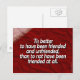 La commande est arrivée très rapidement et le produit correspond totalement à mes attentes. Cette carte postale est vraiment mignonne et je l'ai offerte à une amie pour les Fêtes. Image de la meilleure qualité. Bon format de carte postale et carton très résistant.
