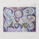Le mot "Amour" est peint dans des pastels doux, blancs et roses, avec du violet dans l'arrière - plan. L'ange est encadré de bleu et de violet. Le mot "Amour" est en or. La peinture acrylique a un contraste textuel et brille d'une couche légère de parties scintillant. Customisez cette carte et faites-la personnelle avec votre propre texte pour les vacances et les occasions spéciales!