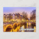 Cette carte postale de voyage présente une photo de la ville mondialement célèbre d'Amsterdam, Pays-Bas, en début de soirée. Cette magnifique carte postale serait idéale pour le meilleur des amis, de la famille et des collègues.
