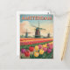 Découvrez la beauté de la Pays-Bas avec cette carte postale de style vintage qui présente les champs de tulipes emblématiques d'Amsterdam. Les fleurs vibrantes, associées à un design rétro intemporel, célèbrent le riche patrimoine floral du pays et le charme des paysages hollandais. Parfait pour les amateurs d'art de voyage vintage, de nature et de fleurs colorées.
