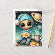 Carte Postale Amusant Alien avec des oeufs frits dans l'espace
