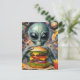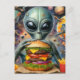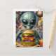 Un alien mangeant un cheeseburger un design amusant et coloré unique généré par l'IA