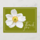 Carte Postale Anémone japonaise blanche sur fond vert Merci