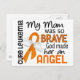 Pour voir ce design pour d'autres proches ainsi que la collection complète de cadeaux de sensibilisation de modèles exclusifs Leukemia Sensibilisation et Soutien, visitez notre section Leukemia à Honor et rappelez-vous votre mère qui a courageusement combattu Leukemia avec Ma mère était si courageux t-shirts, marchandises, et cadeaux avec des polices texte contrastées et un ruban orange de sensibilisation Leukemia orné de fluttering el wings.Copyright Avis : Veuillez noter que la boutique de cadeaux de sensibilisation détient le droit d'auteur de cette conception. Toute utilisation ou reproduction sans autorisation écrite est strictement interdite. En tant que survivants du cancer et de la maladie et guerriers, conjoints et adeptes de la sensibilisation, nous sommes heureux de soutenir divers organismes caritatifs et invitations vous de penser à nous d'abord pour tous vos besoins de sensibilisation et de soutien à la leucémie.