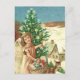 Vintage Illustratation of a sweet little angel bringing Christmas poists and presents.