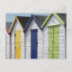 Carte postale de cabanes de plage traditionnelles anglaises, en bois et colorées au bord de la mer du Devon. La photo a été prise à Paignton, Devon, Angleterre