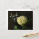 Message de remerciement évocateur de carte postale en bleu Rembrandt brun et ivoire pâle et vert. Un message artistique dans la photographie florale originale. Le texte d'apparence calligraphique semble brossé à la main dans un vert pistache léger.
