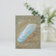 Une belle coquille bleu-blanc d'aile blanche dans le sable beige de la plage, entourée d'eau de mer au soleil.