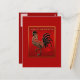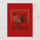 Carte postale chinoise 2017 = Effet sérigraphié numérique pour cette conception de Coq en noir et or sur arrière - plan rouge "soie" avec un cadre doré simple. Lettres dorées avec ombre (non personnalisable) et symbole rouge métallique du coq. Carte postale pour le Nouvel An Chinois 2017 ou anniversaire. Carte de voeux du Nouvel An chinois correspondant. N'oubliez pas toute la collection. — "On peut dire que les personnes nées dans ces plages de dates sont nées dans l'"Année du coq", tout en portant le signe élémentaire suivant : 26 janvier 1933 - 13 février 1934 Water Rooster, 13 février 1945 - 1er février 1946 Wood Rooster, 31 janvier 1957 - 17 février 1958 Fire Rooster, 17 février 1969 - 5 février 19 70 Earth Rooster, 5 février 1981 - 24 janvier 1982 Metal Rooster, 23 janvier 1993 - 9 février 1994 Water Rooster, 9 février 2005 - 28 janvier 2006 Wood Rooster, 28 janvier 2017 - 1 6 février 2018 Fire Rooster." Wikipédia