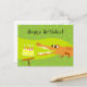 L'alligator sourit à son gâteau d'anniversaire avec quatre bougies. Le texte indique le joyeux anniversaire, mais est personnalisable.