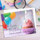 Souhaitez un joyeux anniversaire à vos élèves avec cette carte postale personnalisée. Gâteau d'anniversaire avec ballons et écriture et lettrage moderne. Carte postale au verso vierge pour écrire un mot.