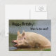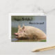 Un porc avide qui parle souhaite un joyeux anniversaire puis demande "Où est le gâteau ?" photo carte postale d'anniversaire. Le texte peut être modifié ou supprimé avec le bouton PERSONNALISER.