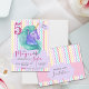Carte postale d'anniversaire Licorne Magique Pastel Chevron | Invitation de fête Licorne Arc-en-ciel.