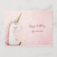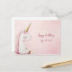 Cette carte postale rose représentant une licorne mignonne assise sur le côté avec un message personnalisable "joyeux anniversaire ma licorne" est un excellent choix de carte d'anniversaire pour votre petite fille, petite-fille ou neveu.