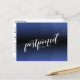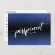 Le fond est recouvert d'un trio de courbes bleues avec un subtil dégradé noir en surimpression. En utilisant une jolie police script avec des volutes et des vagues, j'ai créé un graphique qui indique "reporté". Le verso comprend des espaces réservés pour vos coordonnées avec des accents assortis utilisant la police calligraphique. Utilisez ces champs de modèle pour ajouter vos informations personnelles et modifier mon texte brouillon pour l'adapter à vos besoins et à votre situation. D'autres éléments sont disponibles dans le set et je serais ravi de créer des variations supplémentaires sur demande. // 99 //