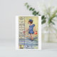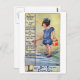 Carte d'anniversaire et de fortune de Little One Une fille portant un maillot de bain à l'ancienne et portant une pelle et un seau, se promène dans l'eau à la plage avec une carte postale vintage de 1911.
