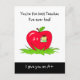 Puisque la semaine nationale de la carte postale et la semaine de l'appréciation des enseignants sont la même semaine, pourquoi ne pas accomplir deux choses à la fois! Personnalisez cette carte postale d'appréciation de l'enseignant avec un dessin d'un insecte mignon portant une casquette de fin d'études et tenant un diplôme, regardant à travers la fenêtre d'une pomme rouge vif, il s'est transformé en une maison. On peut lire sur le front : Vous êtes le meilleur professeur que j'aie jamais eu. Je vous donne un A+. D'autres cadeaux spéciaux pour l'appréciation des enseignants avec ce thème se trouvent sur PhotographyTK Designs Boutique cadeaux.