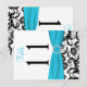 Cette carte de numéro de table damassé noir et blanc possède un ruban imprimé bleu aqua et une broche de bijoux en diamant IMPRIMÉ qui serait parfait pour un mariage à thème aqua et noir. **Vous DEVEZ changer le numéro 11 à chacun des numéros de table dont vous avez besoin, l'ajouter à votre panier, puis revenir et répéter le processus jusqu'à ce que vous ayez toutes les cartes numérotées individuellement dont vous avez besoin dans votre panier. EN OUTRE, si vous modifiez les polices ou la taille de la police, une partie de la conception et/ou du texte peut être coupée. Tout va s'imprimer comme vous le voyez sur votre écran. Je ne verrai pas les changements que vous faites, et Zazzle ne corrigera rien (fautes de frappe, mauvais alignement, etc.). Le texte est entièrement personnalisable. Vous pouvez sélectionner l'une des 2 tailles de la carte de numéro de table. Si vous avez besoin d'aide pour ce produit, envoyez-moi un courriel AVANT de passer votre commande. Si vous avez besoin d'autres articles correspondants, veuillez envoyer votre demande par courriel à niteowlstudio@gmail.com