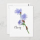 Belle aquarelle de style botanique moderne illustration de belles fleurs de chicorée bleue sur la tige et texte de style script sur l'arrière - plan blanc